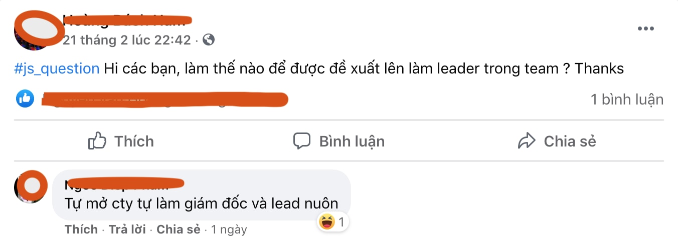 "Hi các bạn, làm thế nào để được đề xuất lên làm leader trong team ? Thanks" Một câu hỏi đáng suy ngẫm cho những bạn có ý chí tiến thủ... Trước đây một tờ báo nổi tiếng đã đăng một bài của Max một trong những nhà lập trình viên cao cấp nhất đó là bài viết "The Singular Secret of the Rockstar Programmer" tạm dịch là "Bí mật của một siêu sao lập trình viên". Ở đó bạn cũng sẽ thấy hình ảnh mình ở đó.