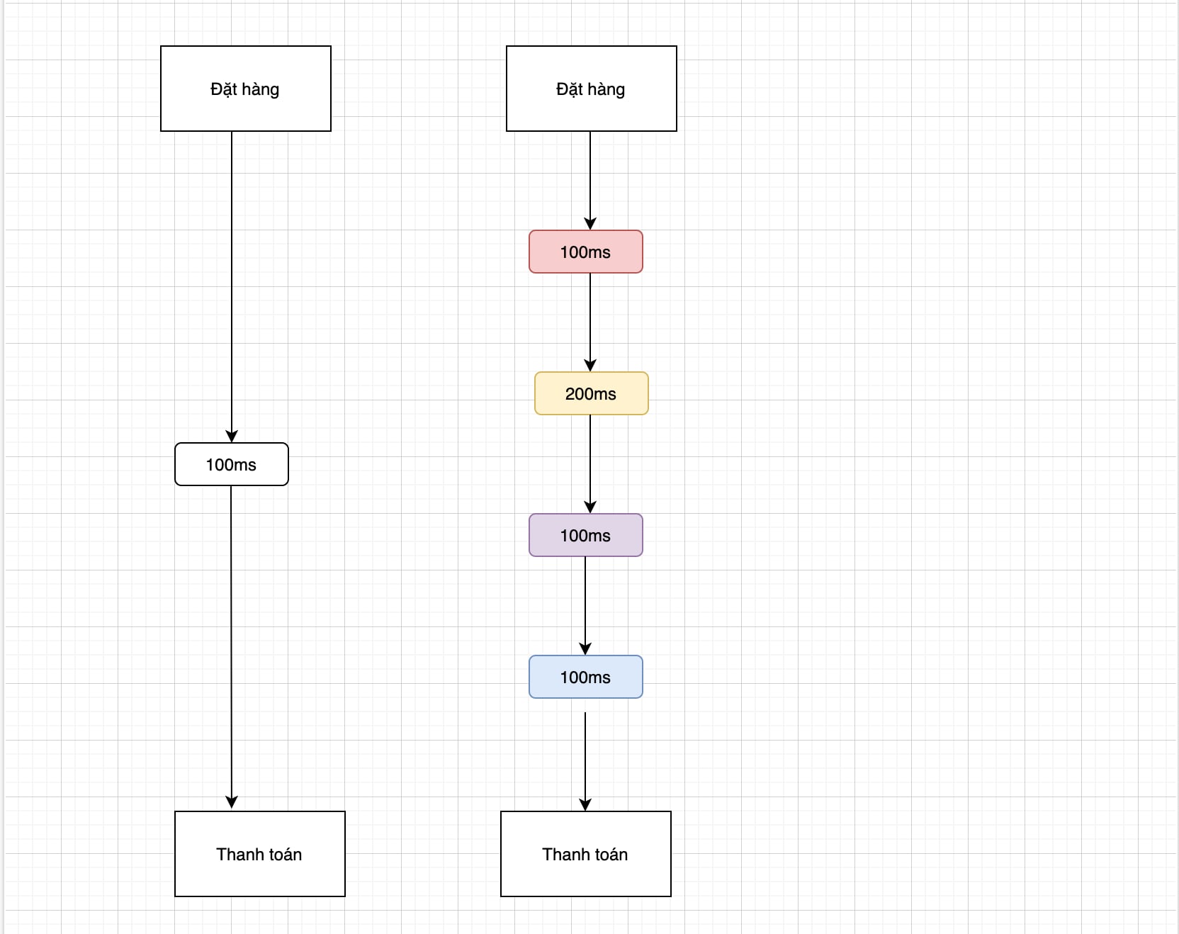Bước thứ hai anh GIÁM ĐỐC này quyết định xây dựng hệ thống tích điểm (Xu) cho mỗi đơn hàng được đặt thành công. Team code nói được rồi, có thêm 200ms trong quá trình tăng hoặc giảm điểm của mỗi đơn hàng cho người dùng. Mấy rồi, 400 ms rồi phải không? Chưa hết đâu