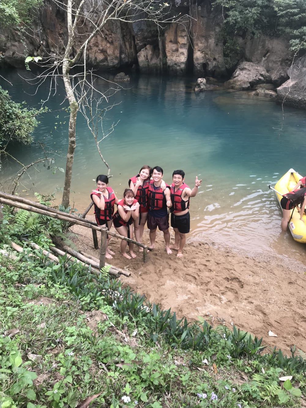 Xe sẽ đưa các bác đến với khu Phong Nha Kẻ Bàng sau khi vượt qua 54km. Mỗi người chỉ hết có 30k xe bus. Đến đấy các bác có thể thăm hang Phong Nha. Ở hang này chủ yếu di chuyển bằng thuyền và thưởng ngoạn khung cảnh hai bên bờ, trong hang. Cảm giác sẽ như đi Tràng An của Ninh Bình vầy đó. Còn nếu đi động Tiên Sơn sẽ đi thuyền một đoạn, sau đấy leo bộ khá là cao và xa, trong hang cũng dài và kỳ vĩ lắm ạ. Giá vé vào động nước là 150k và động khô chỉ 80k. Tuy nhiên, em thì em không suggest các bác đi 2 hang này dù nó đẹp lắm, tuyệt vời lắm bởi có 1 hang đáng đi hơn rất nhiều mà không quá đắt. Đó là hang Thiên Đường. Từ khu Phong Nha, đi taxi/ xe ôm/xe máy thêm khoảng 20km nữa là đến.